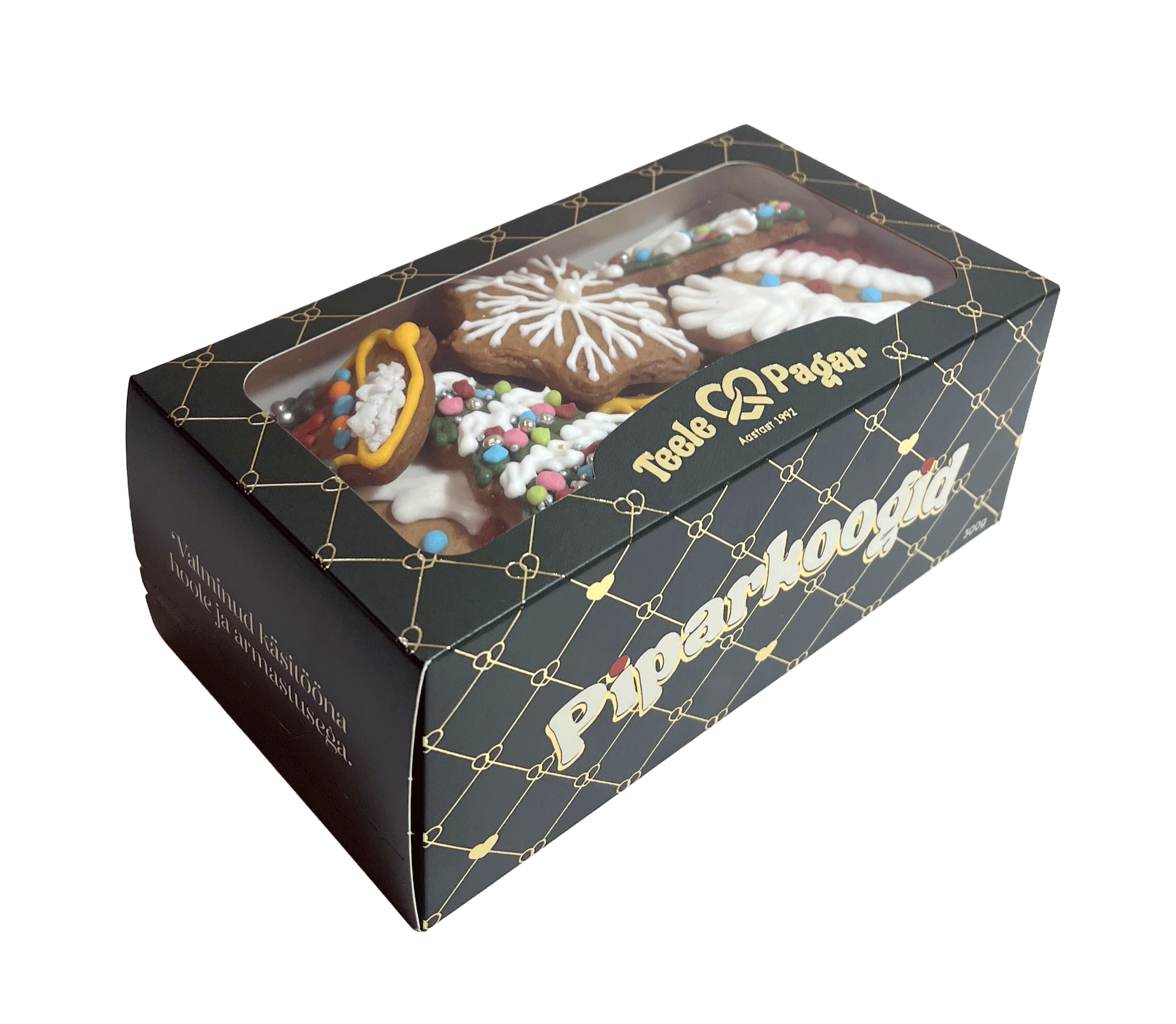 Karp sisaldab 200 grammi suhkruga piparkooke ja 100 g kaunistatud piparkoogi figuure.