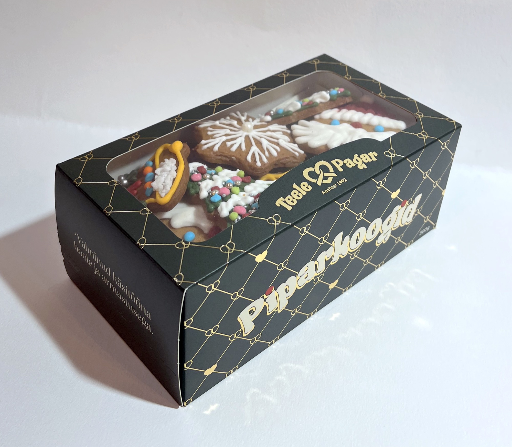 Karp sisaldab 200 grammi suhkruga piparkooke ja 100 g kaunistatud piparkoogi figuure.